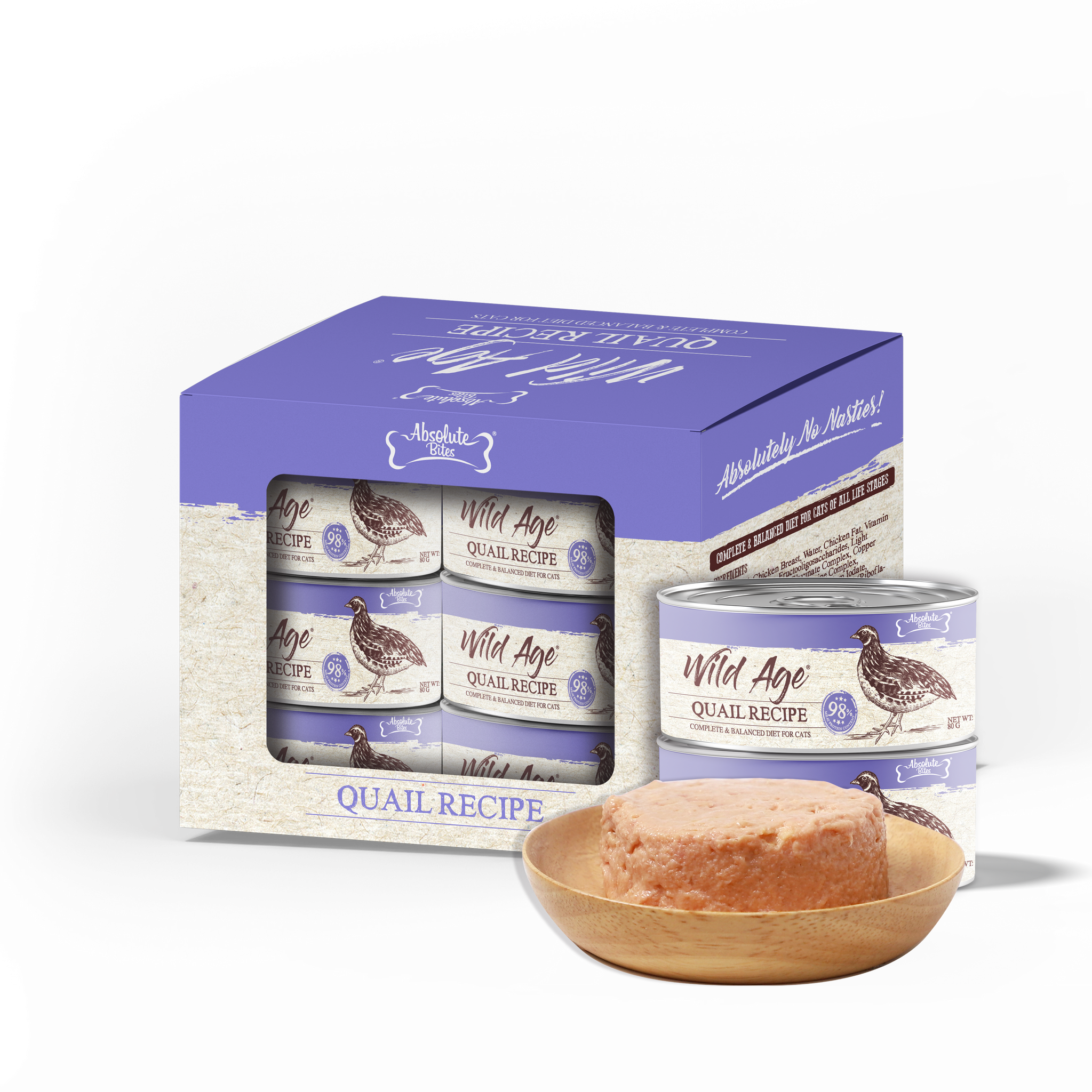 Absolute Bites Wild Age Complete & Balanced Diet Canned Cat Food - Quail Recipe (80g x 6)