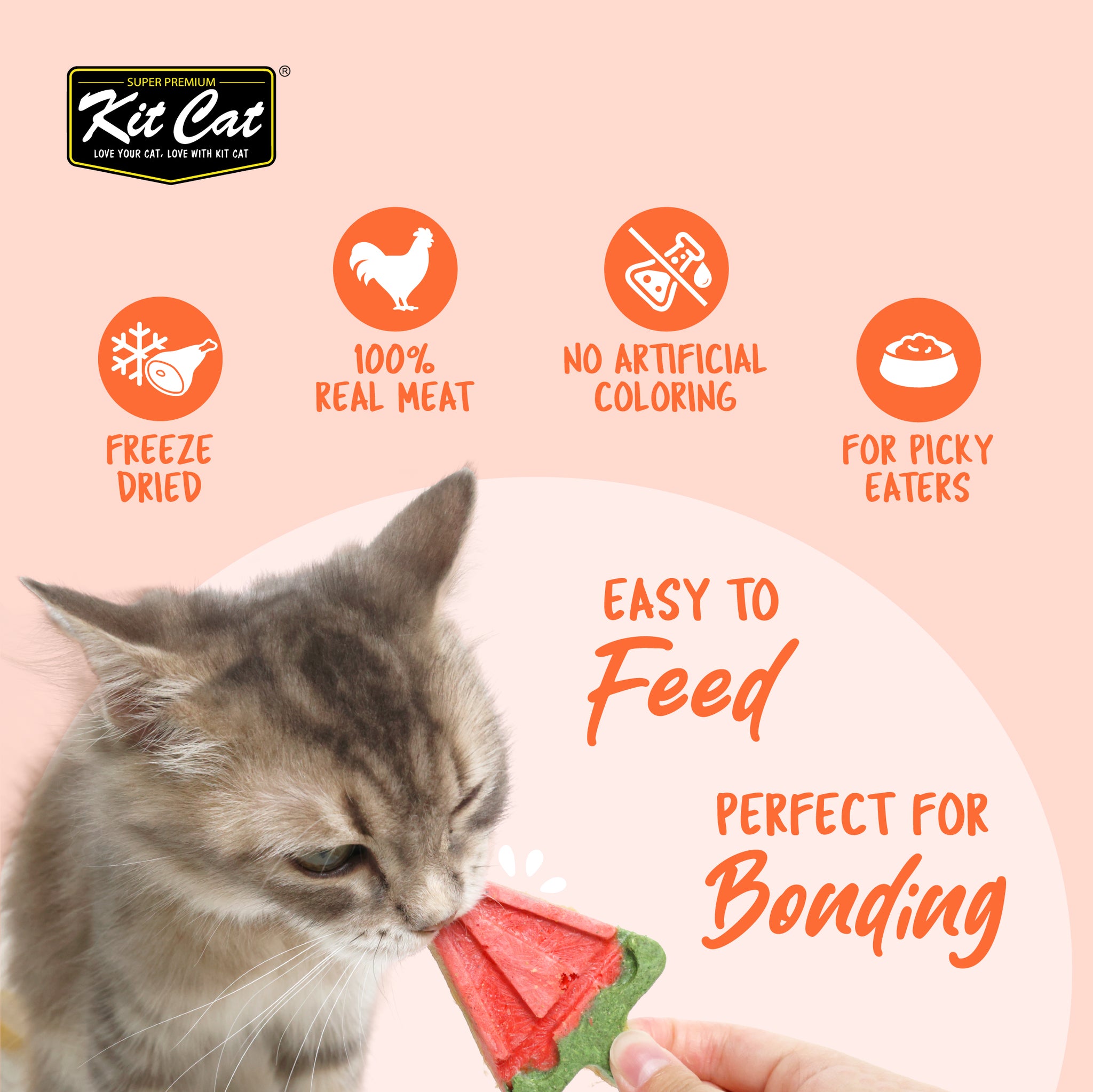 Kit Cat Party Packs is crafted with 100% real chicken breast, Kit Cat Party Packs is the perfect freeze-dried treat-wholesome, nutritious, and irresistible. Each portion is individually packed to lock in freshness and flavor, making treat time convenient and mess-free.