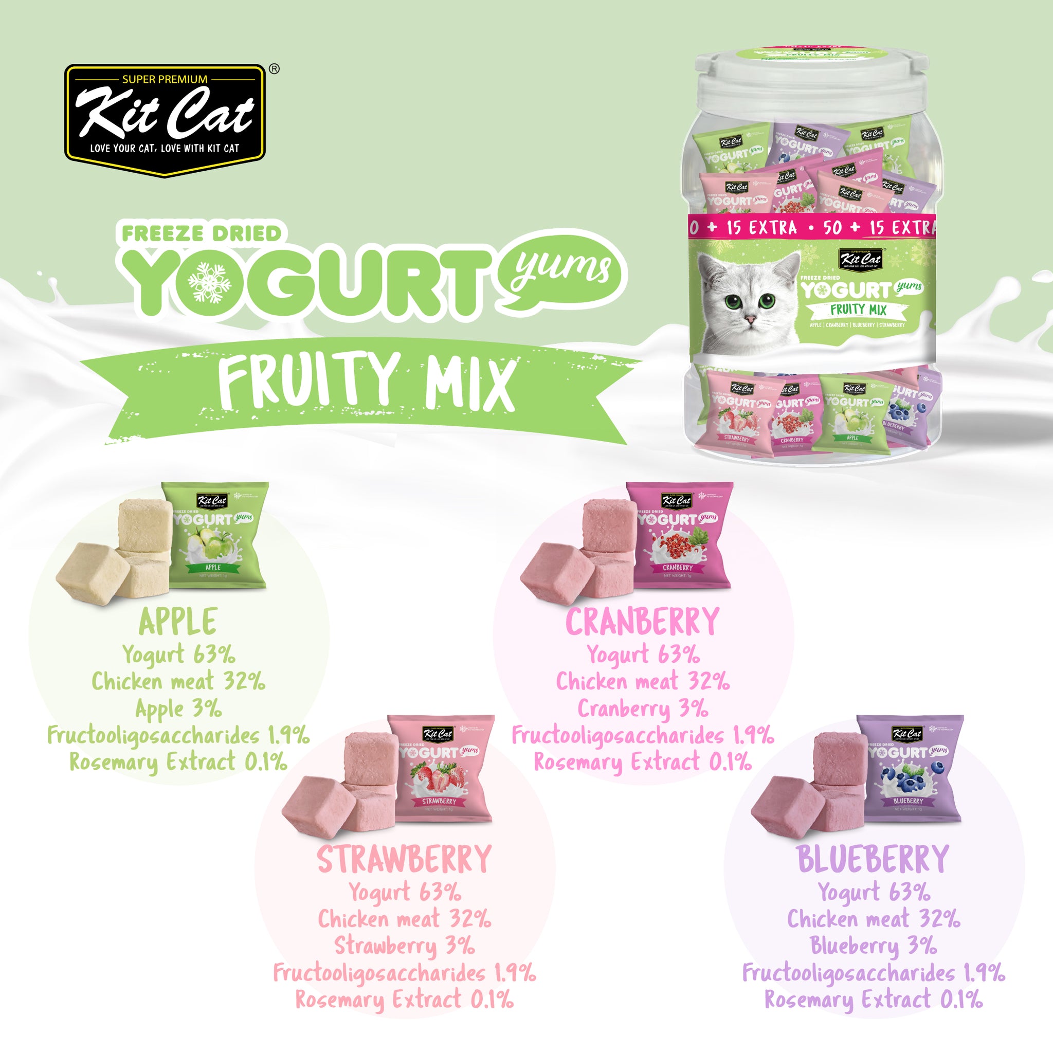 Kit Cat Yogurt Yums Freeze Dried Treats Tub for Cats - Fruity Mix (65g) | 65pcs